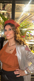 This gorgeous chocolate brown-orange side Bow Wool headband, features a striking bow and is oozing Autumnal vibes and perfect for a chic day or evening out.