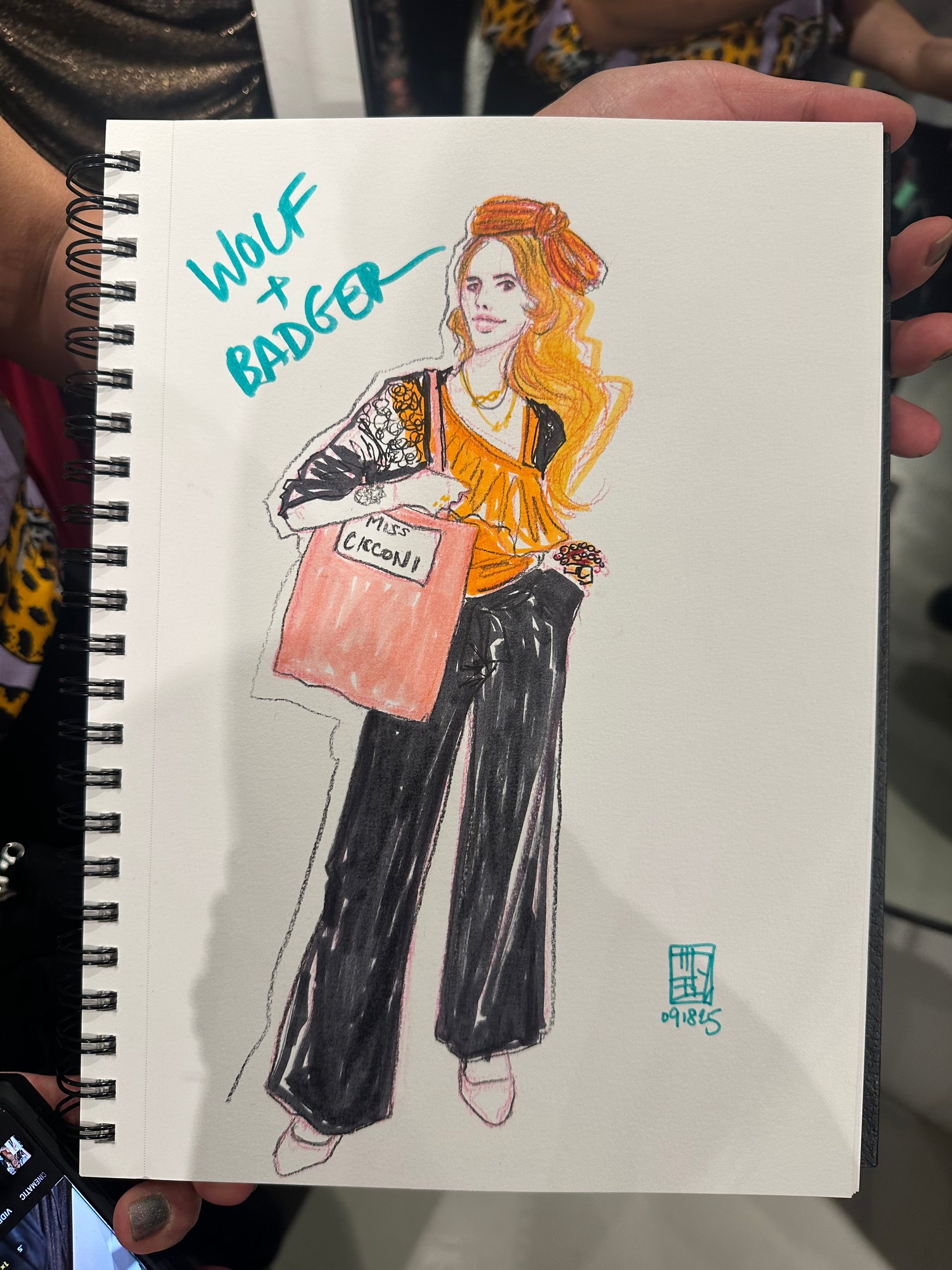 - Rose 14K gold 'MC' heart logo charm sewn onto the side