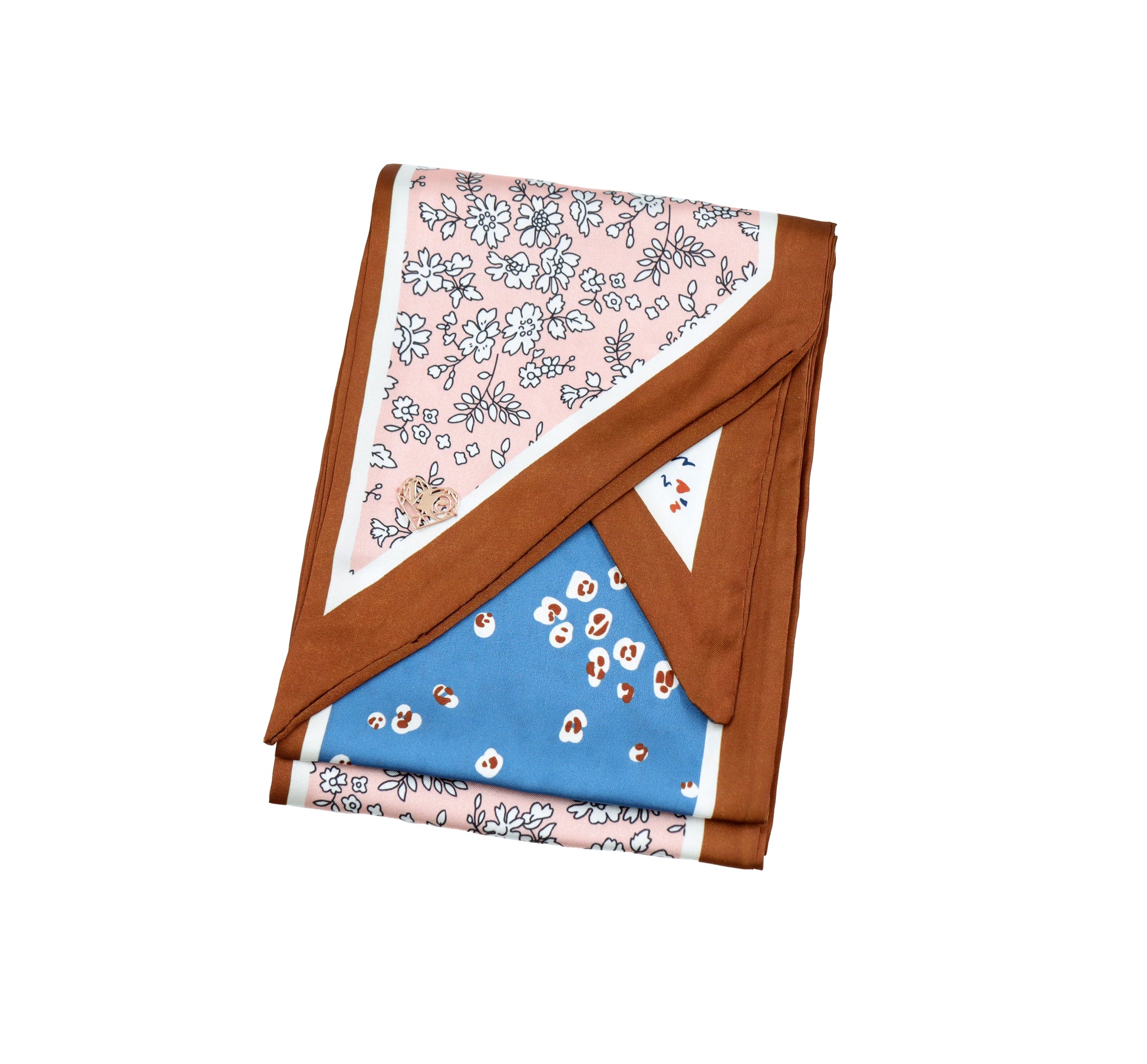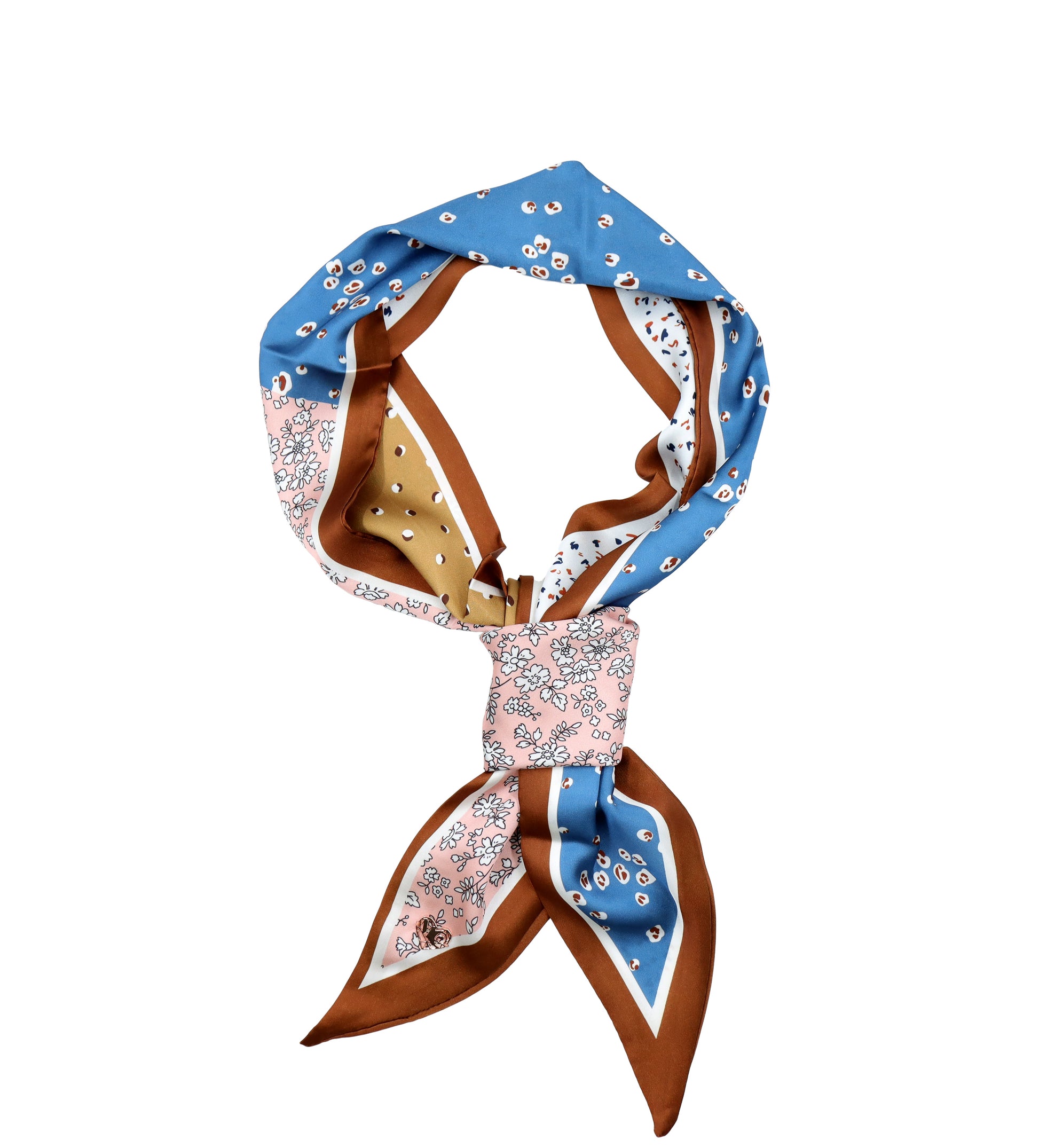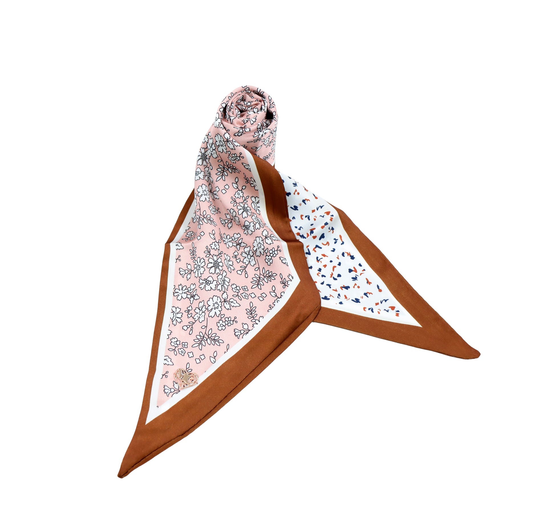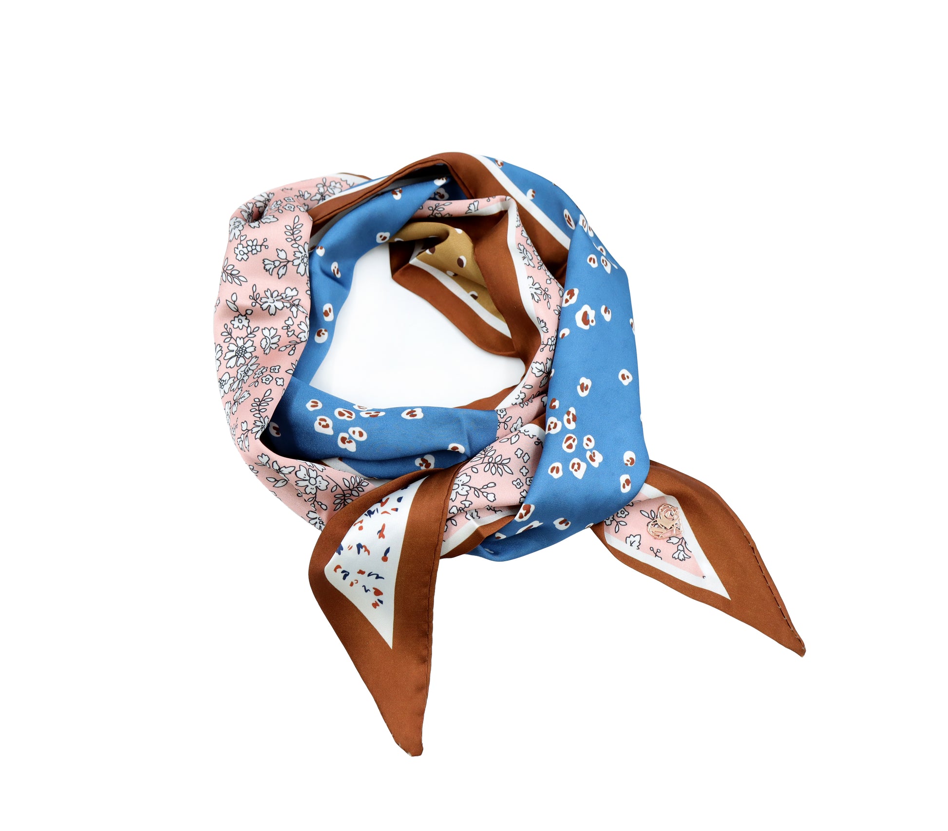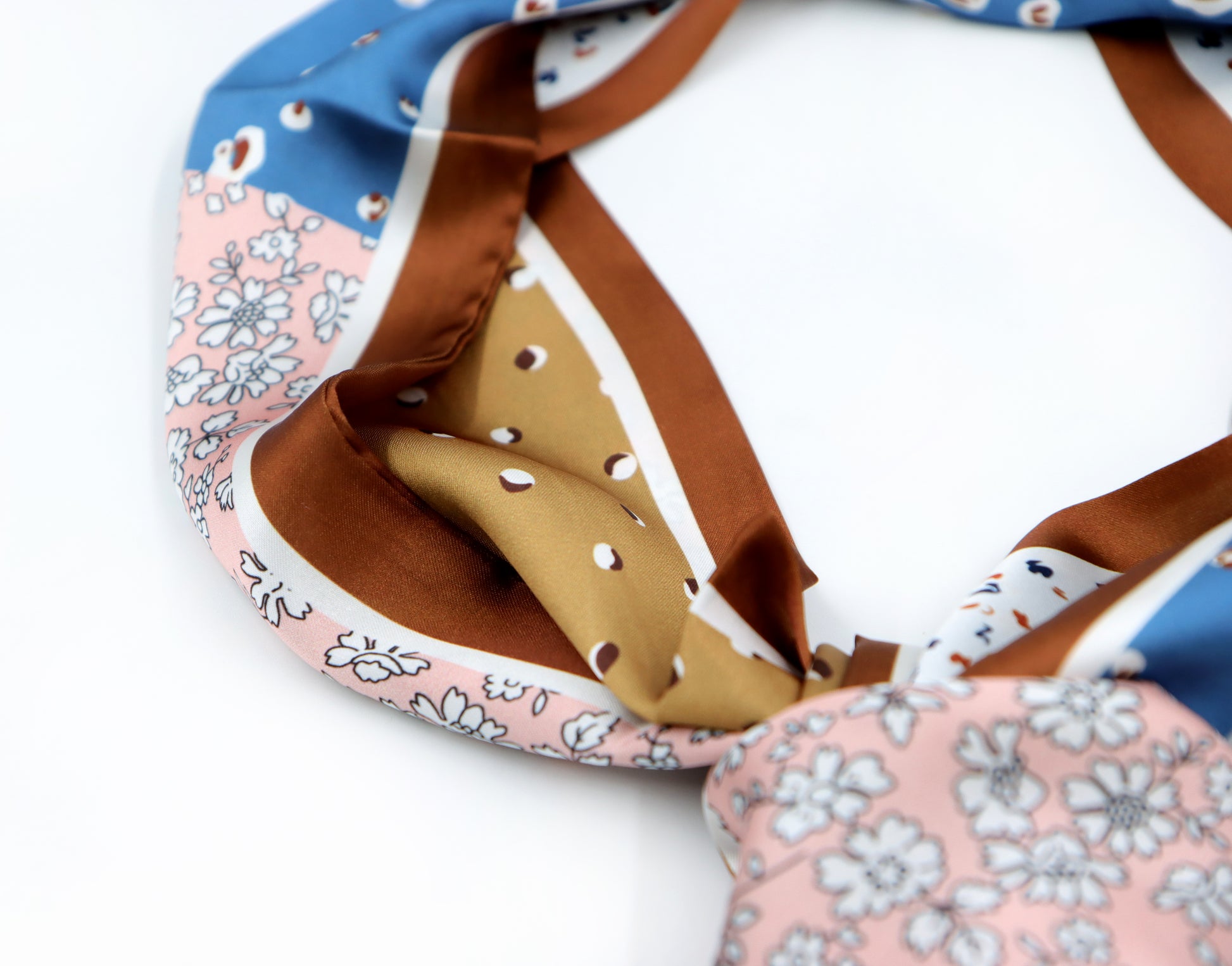 Brigitte - NEW Four Colour-way Pastel Pink, White, Blue and Brown Floral Print - Hair Tie and Scarf