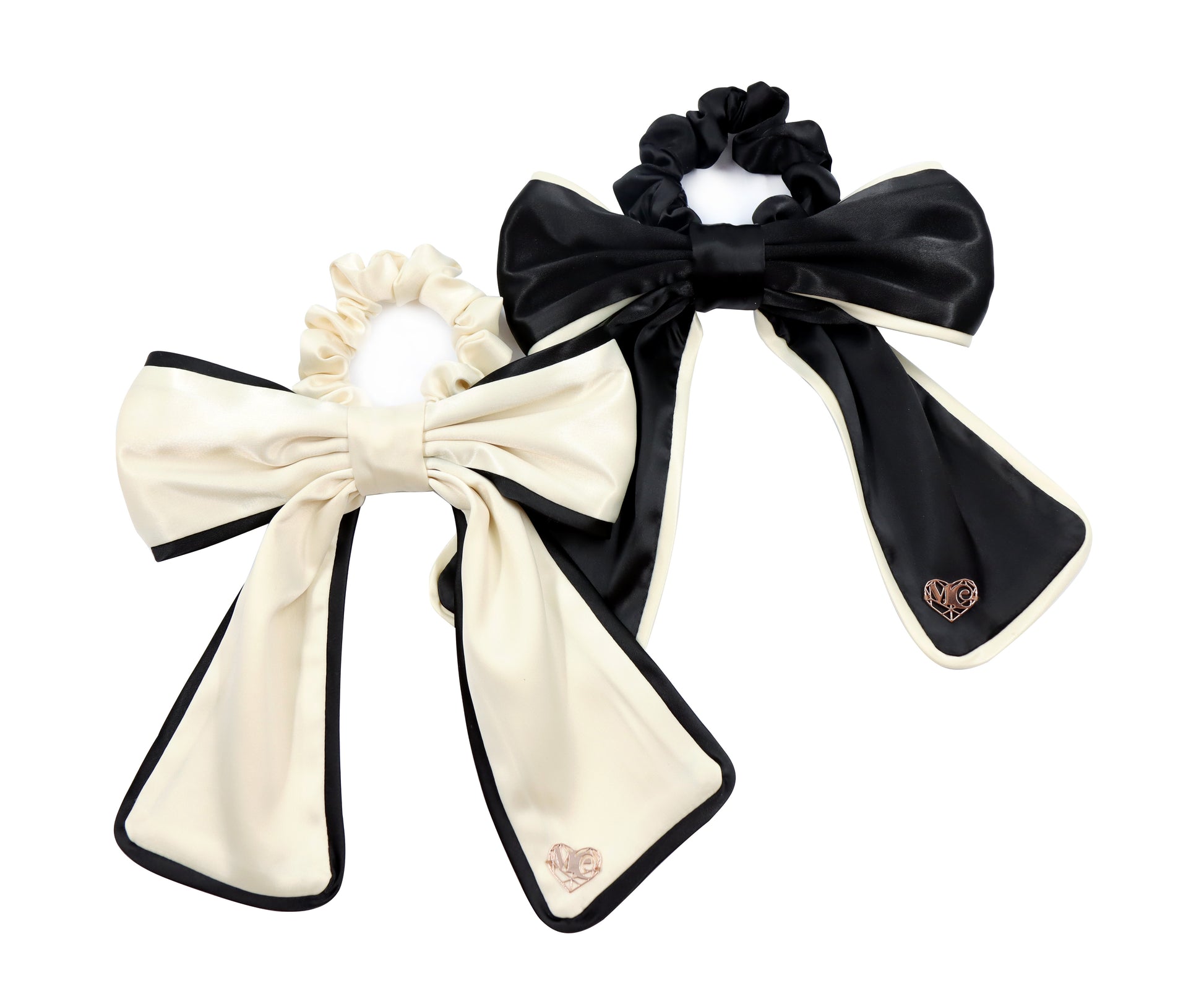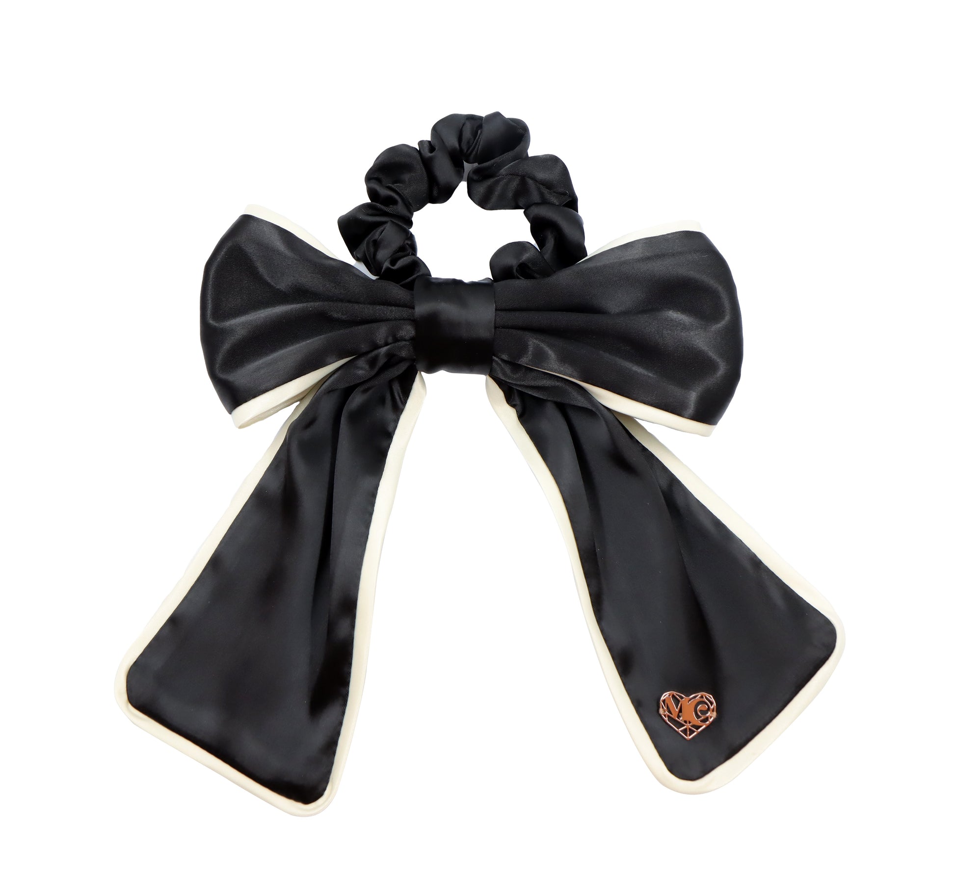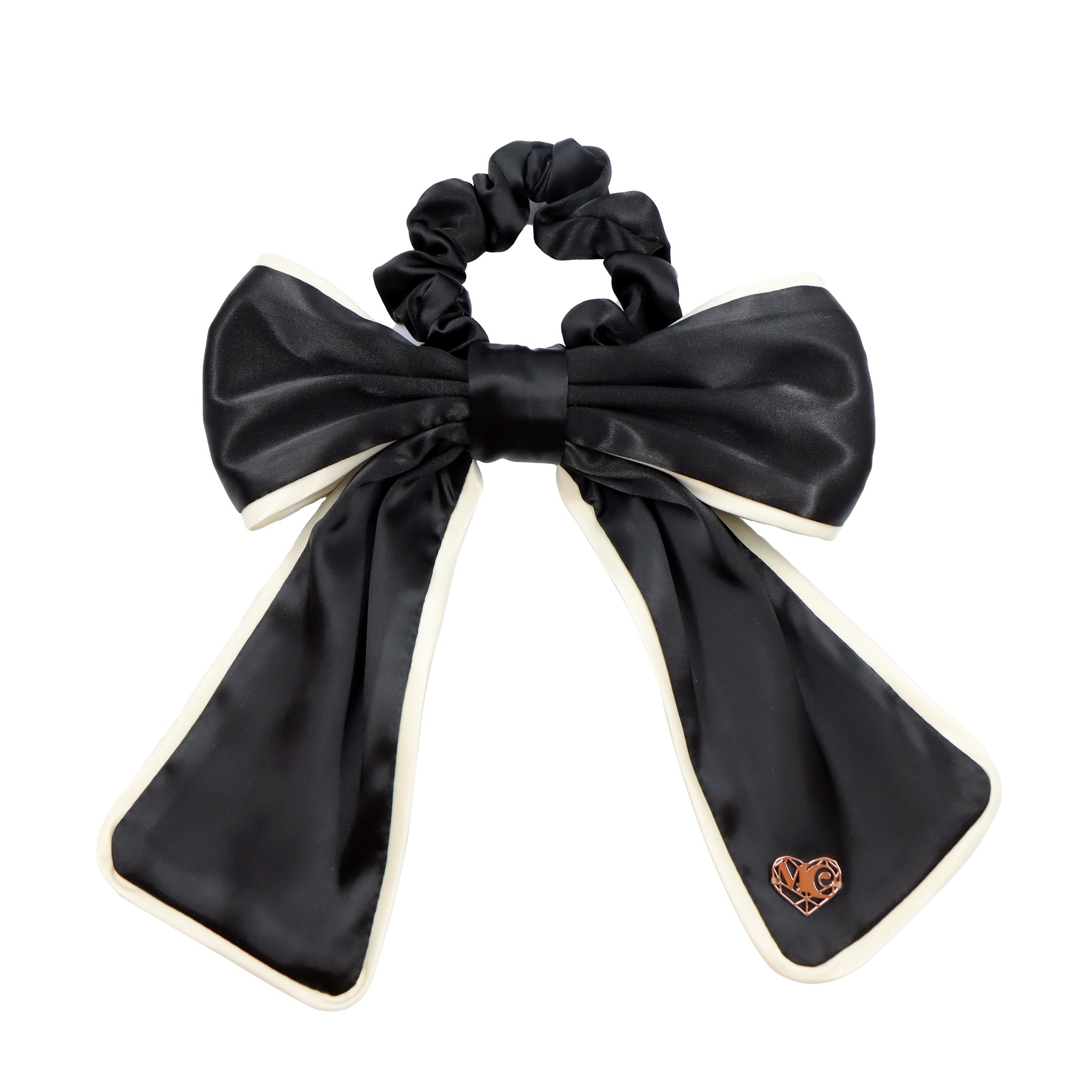 Head into Autumn/Winter days and nights out with our exquisite simple Chané, our silk Black and Beige Bow Scrunchy, part of our Timeless Edit and AW25 Edit. This Bow Accessory is great for adding a romantic, chic vibe to your date night and upcoming Winter Weddings, Pumpkin and Spooky Season Parties!