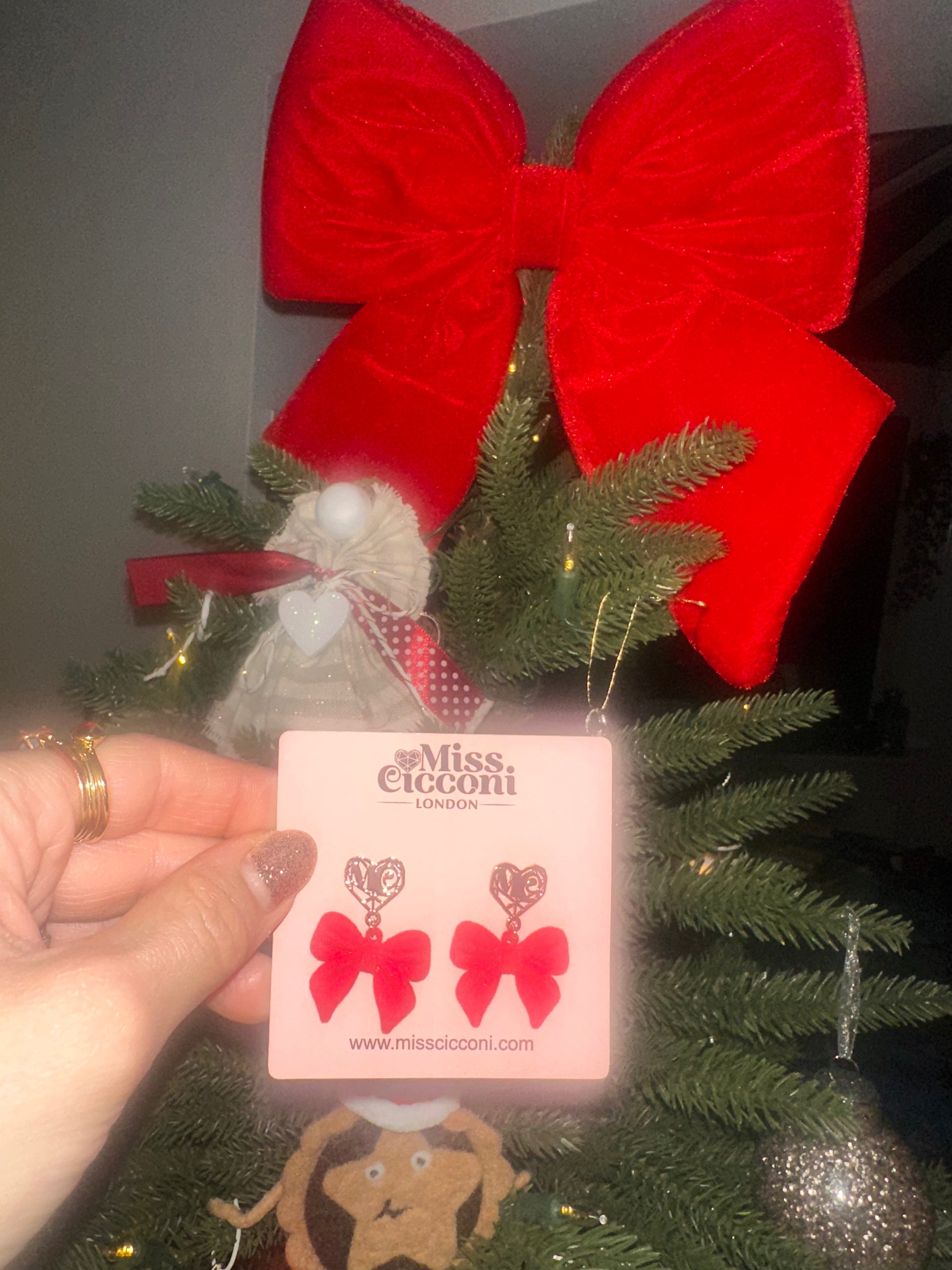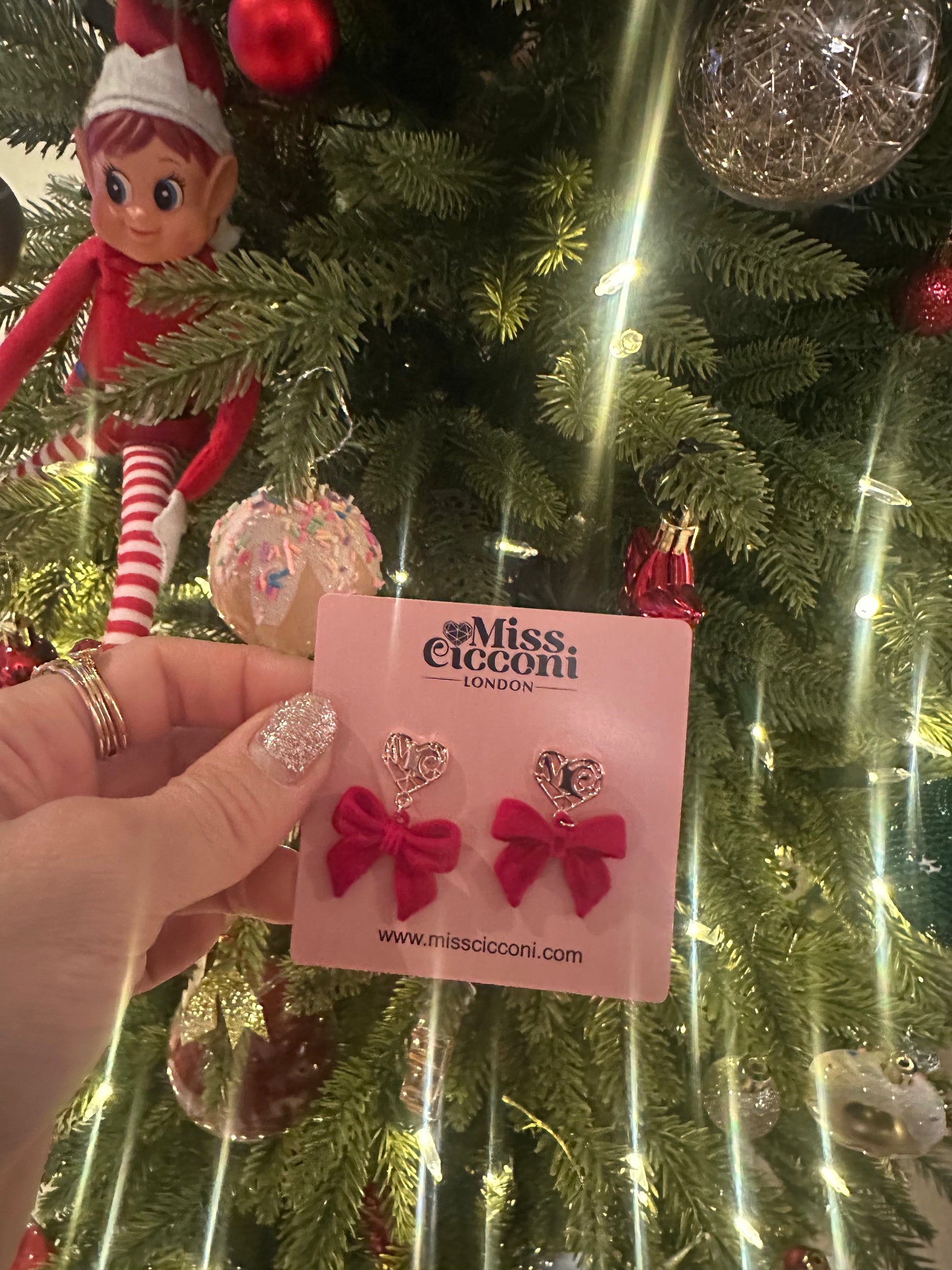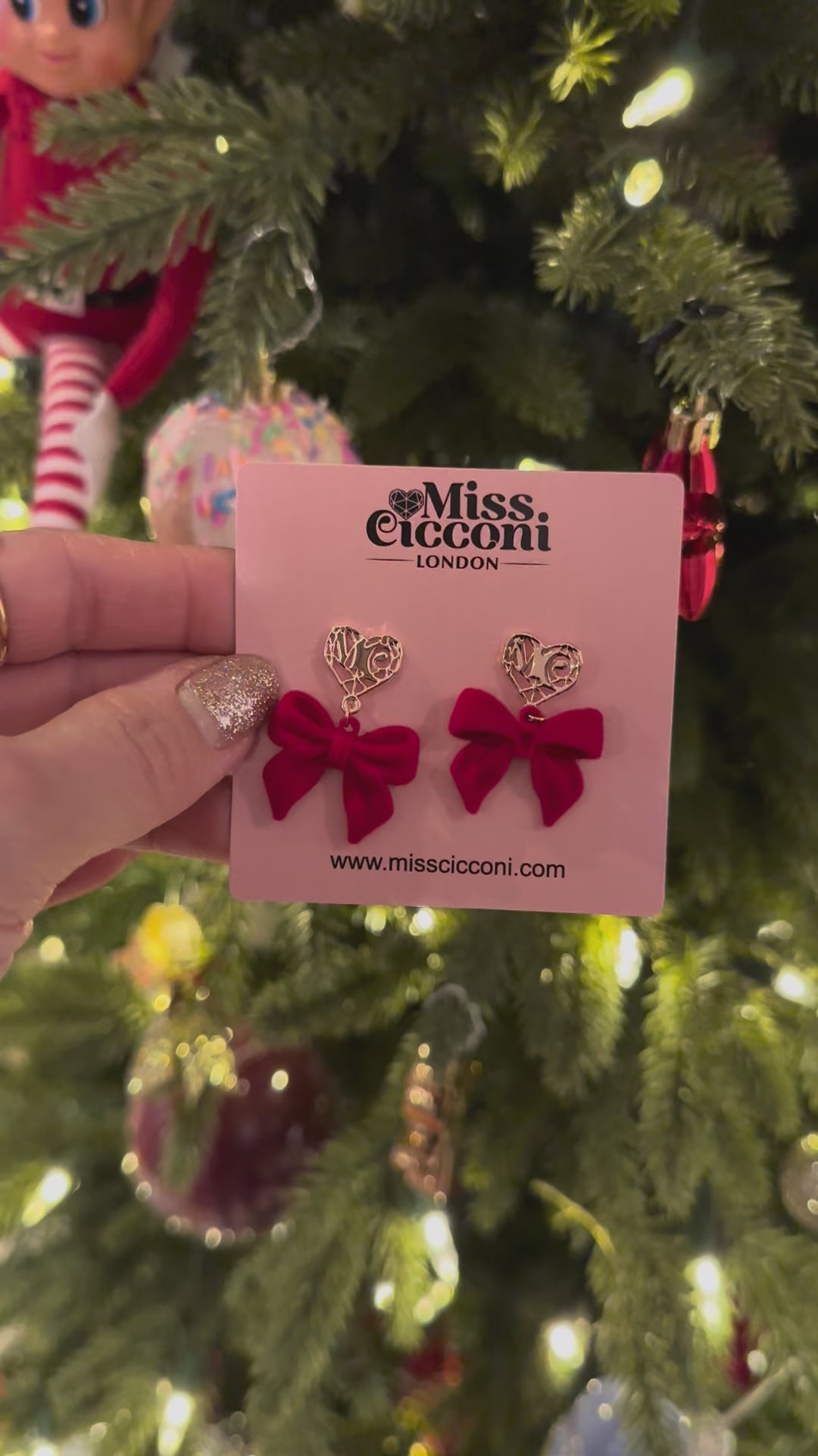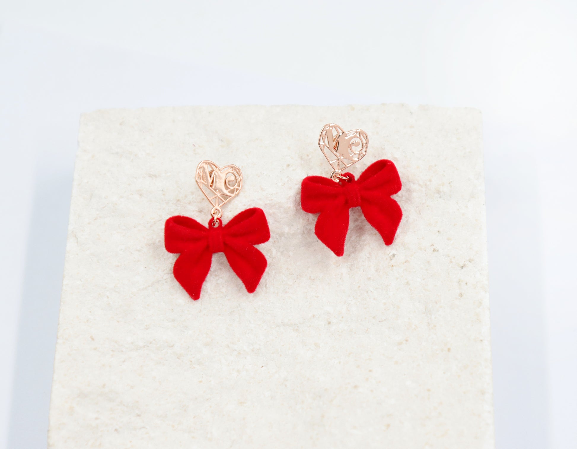 Emily - Hot Red Bow Earrings with MC Charm - Exclusive and New