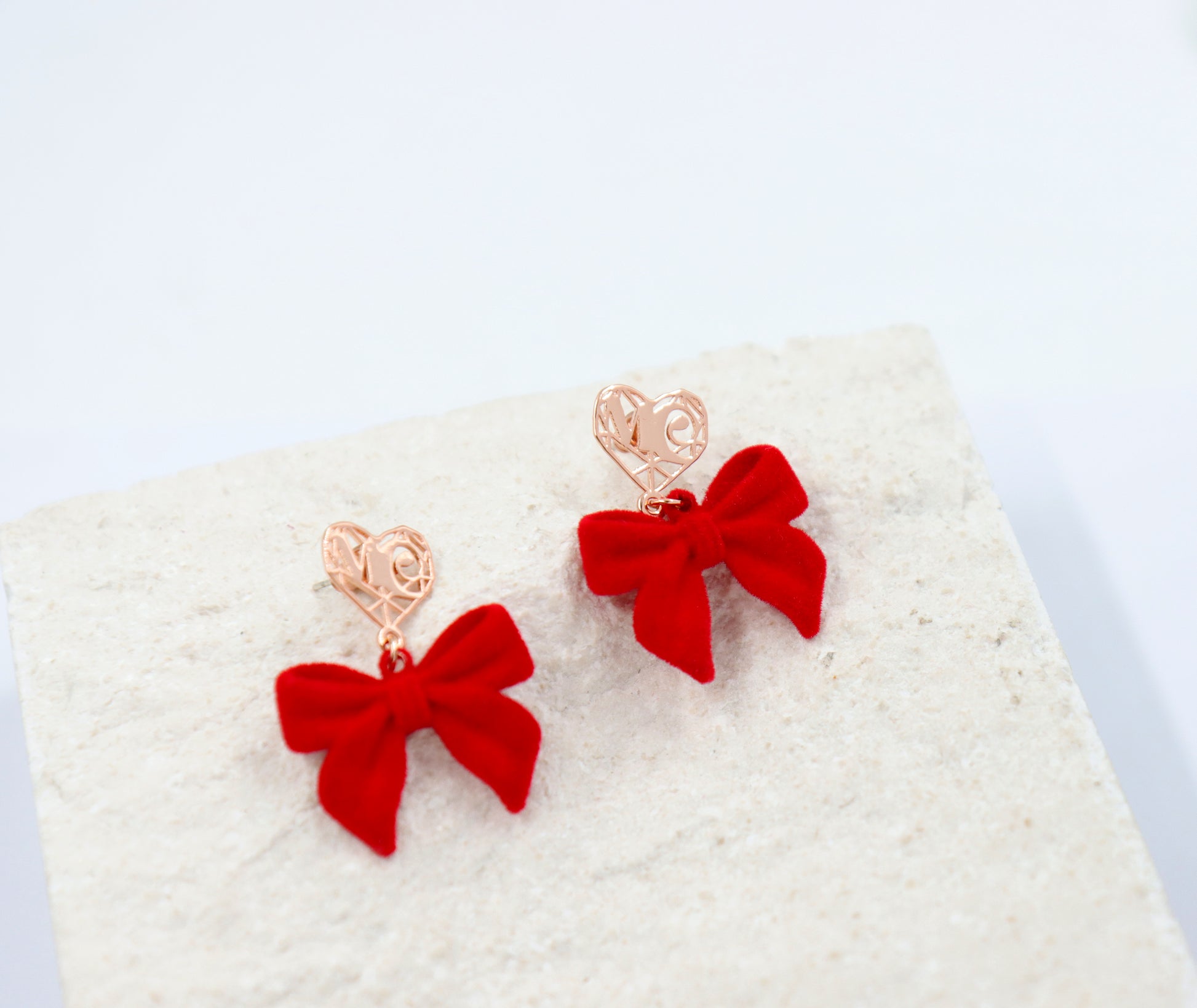 These exclusive beauties feature a 14-carat rose gold plated MC heart charm paired with a hot red colour bow that adds a playful, feminine touch. They're simply adorable and go with many looks! 💕