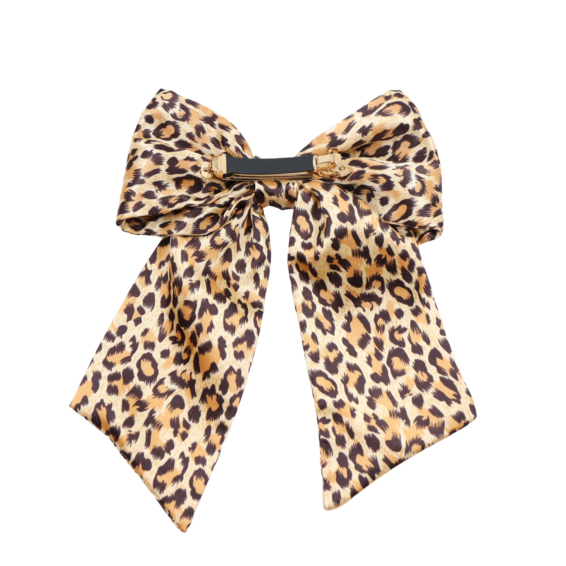 - Leopard Bow Hair Clip in gorgeous soft leopard mocha mousse, orange and butter yellow silk print