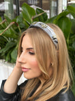 This special 'Silverfox' headband, named with Anna's dad in mind, (as he was always a bit of a Silverfox!) has the grey silk ribbons across the top, adorned with beautiful grey/silver crystals arranged as flowers.