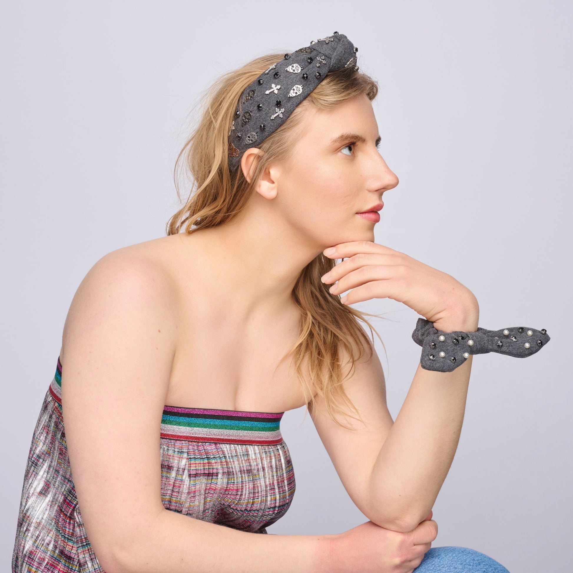 The Vivienne scrunchy is the ultimate fashion accessory! Whether you choose to wear it alone in your hair or on your wrist as a statement piece or pair it with our matching headband for a coordinated look, it will add a touch of style to any outfit.